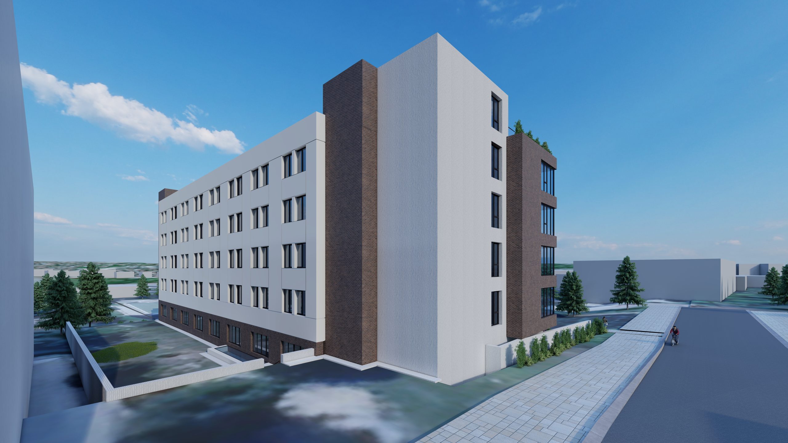 The dormitory building consists of 4 bedroom floors, ground floor and a basement floor.